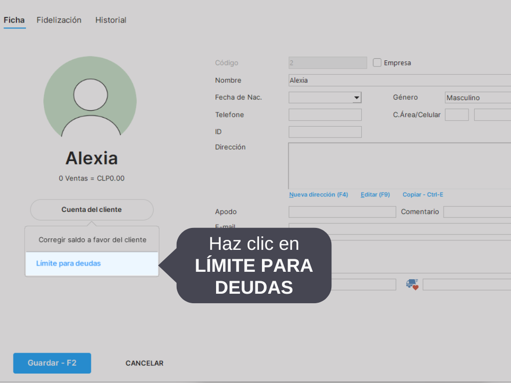 4. Selecciona la opción LÍMITE PARA DEUDAS.