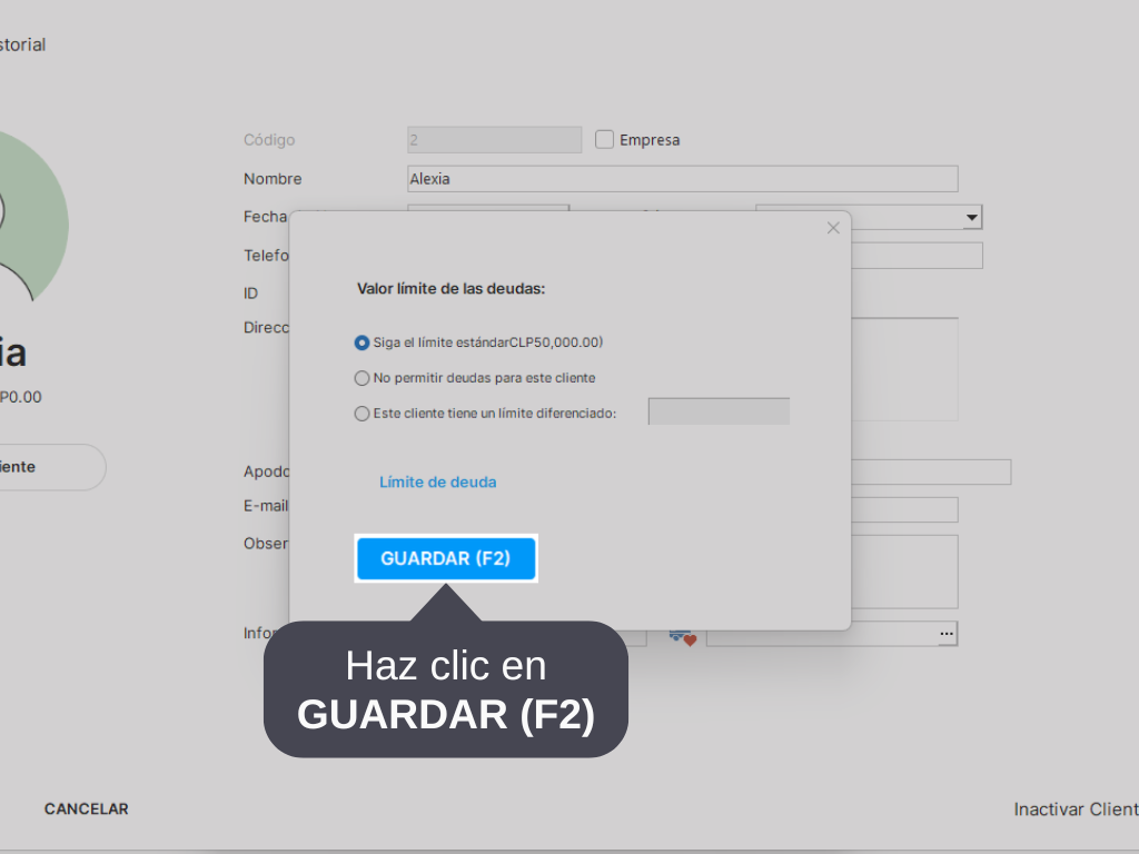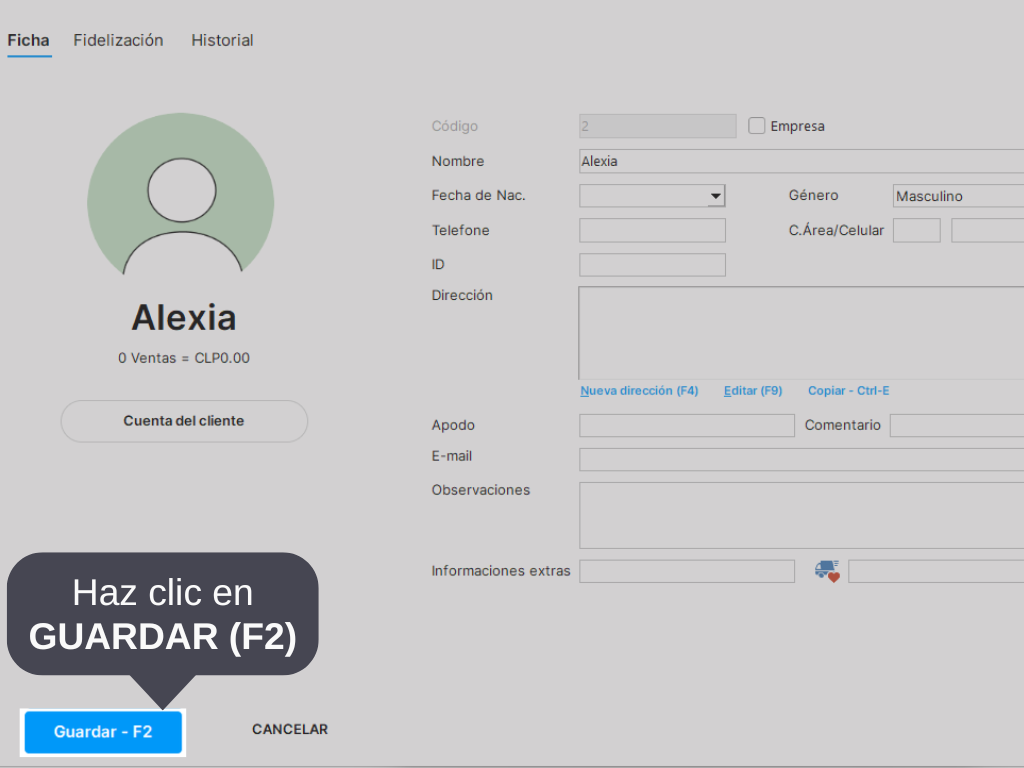 8. Después de seleccionar una de las opciones, haga clic en GUARDAR (F2).